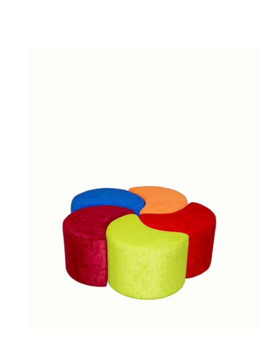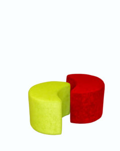 Оригінальний комплект пуфів “Чіз”. Кожна одиниця має незвичайну форму півмісяця. Яскраве забарвлення пуфів дозволяє зробити будь-який інтер’єр приміщення більш естетичним, веселим і цікавим для маленьких відвідувачів.