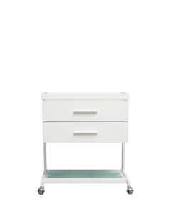 Столик медичний ISMED BOX використовують для комфортного розміщення медикаментів, витратних матеріалів та інструментів. Він виготовлений з міцного металевого каркасу, тож має тривалий термін експлуатації. Металеві ролики роблять столик мобільним у використанні. Спеціальне фарбування забезпечує високу стійкість до агресивних дезінфікуючих засобів.