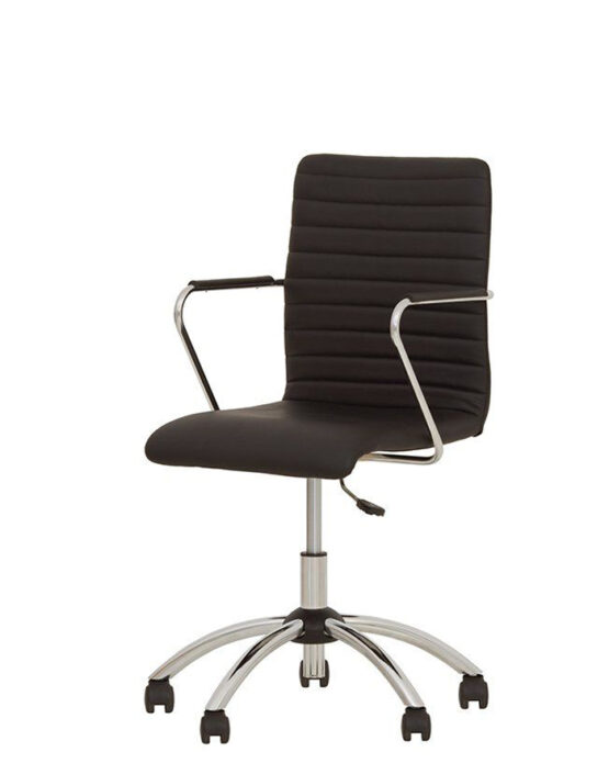 Комп’ютерне крісло “ТАСК” має ергономічні сидіння і спинку. В основі крісла – металева хромована база. Дана модель комплектується пластиковими або прогумованими роликами. На кріслі “Таск” встановлено нерегульовані металеві підлокітники з пластиковими накладками.